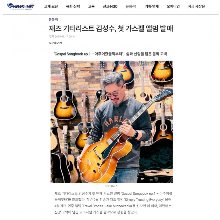 [기사] 재즈 기타리스트 김성수, 첫 가스펠 앨범 발매(뉴스앤넷)